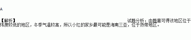 小红今年10岁,可她在家乡从未见过下雪,下面四个城市中,小红的家乡最可
