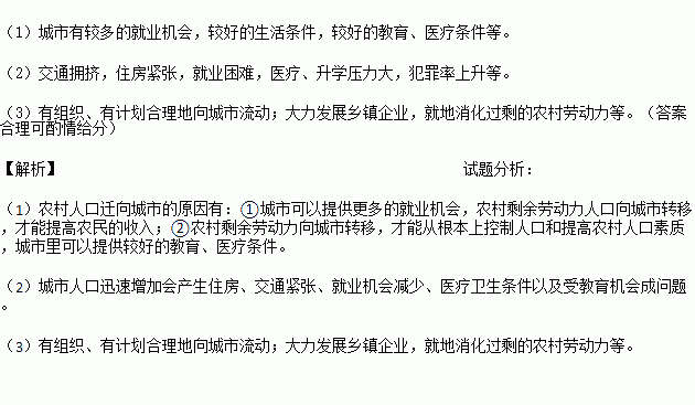 (1)简述农村人口向城市迁移的原因。
