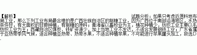 C. 钢铁工业﹣西藏自治区 D. 苹果罐头加工业﹣广东省