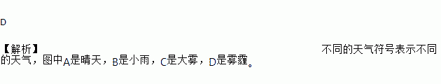 2015年12月7日18时,北京市应急办发布空气重污染红色预警,这也是北京首次启动空气重污染红色预警,北京城雾霾之都。下列表示霾的天气符号是( )