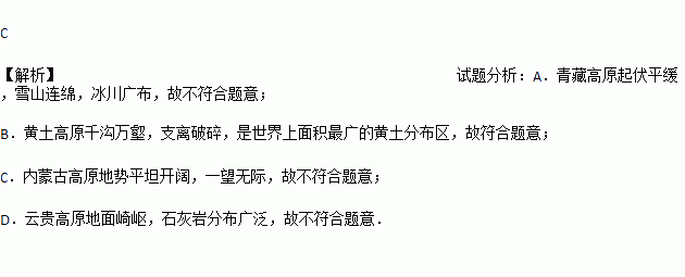 A. 青藏高原 B. 内蒙古高原 C. 云贵高原 D. 黄土高原