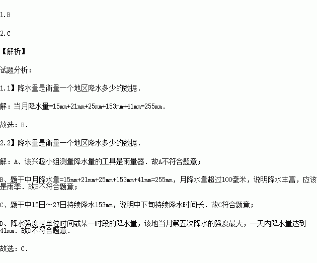 1.该地当月降水量为( )