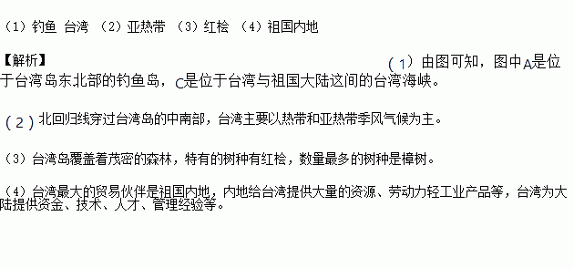 (2)北回归线穿过台湾岛的中南部,台湾主要以热带和___________季风气候为主。