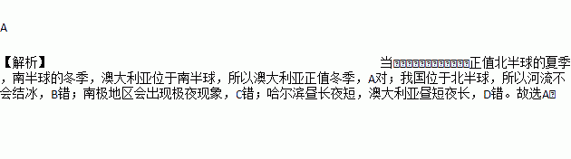 A. 南半球的澳大利亚此时已是冬季 B. 我国的河流都已经结冰