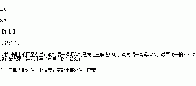 D.黑龙江与乌苏里江主航道中心线的交汇处