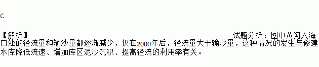 C 【解析】试题分析:图中黄河入海口处的径流量和输沙量都逐渐减少,仅在2000年后,径流量大于输沙量,这种情况的发生与修建水库降低流速、增加库区泥沙沉积、提高径流的利用率有关。