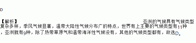 A. 气候复杂多样 B. 大陆性气候分布广