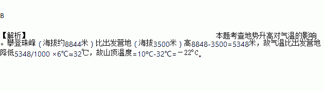 已知某登山队(攀登珠峰海拔约8844米)的出发营地海拔3500米,出发时的气温为10ºC。当他们登上山顶时,所测量到的气温值应是( )