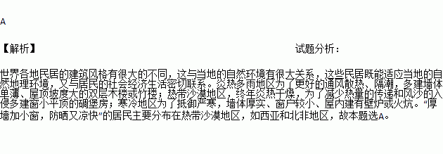 “厚墙加小窗,防晒又凉快”的民居主要分布在( )。