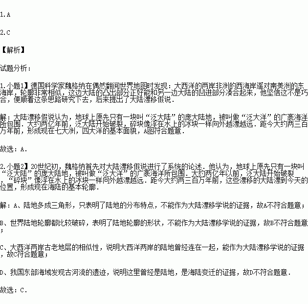 2.下列事实中,可以作为大陆漂移说证据的是( )