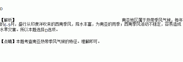 A.西南季风 B.海陆位置 C.山地迎风坡 D.东北季风