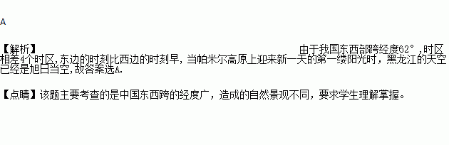 当帕米尔高原上迎来新一天的第一缕阳光时,黑龙江的天空已经是( )