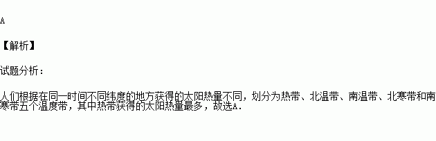 根据地球表面五带的划分,下列四个地区一年中获得太阳光热量最多的是