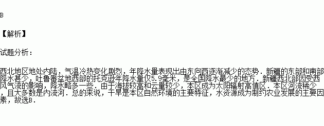 制约西北地区农业生产的最主要因素是 ( )