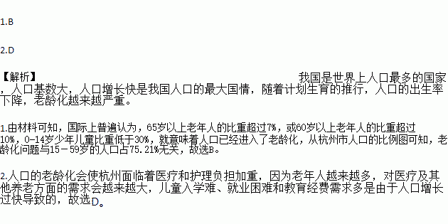 1.右图中数据不能证明杭州市面临人口老龄化问题的是