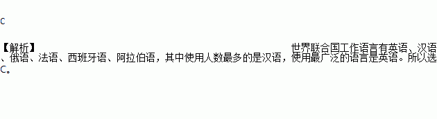 A. 西班牙语 英语 B. 阿拉伯语 俄语 C. 汉语 英语 D. 汉语 德语