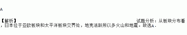 A 【解析】试题分析:从板块分布看,日本位于亚欧板块和太平洋板块交界处,地壳活跃所以多火山和地震。故选A.