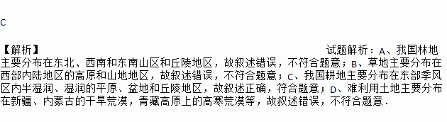 (题文)关于我国土地资源的分布,下列说法正确的是