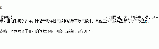 亚洲气候复杂多样,但缺少下列哪两种气候类型( )
