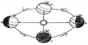 (2)当地球公转至A处时,日期是3月21日前后,这一天正是24节气中的春分日,太阳直射点在赤道上.