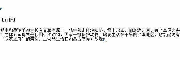 A. 藏羚羊 B. 牦牛 C. 骆驼 D. 三河马