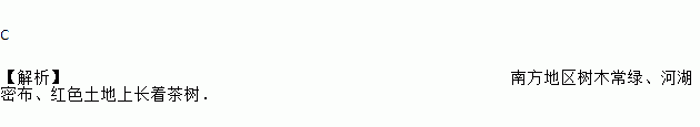 C 【解析】南方地区树木常绿、河湖密布、红色土地上长着茶树.