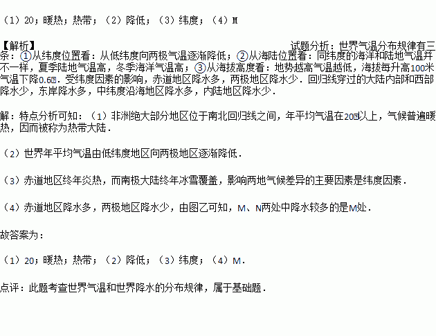 (1)非洲绝大部分地区年平均气温在 ℃以上,气候普遍 ,因而被称为 大陆.