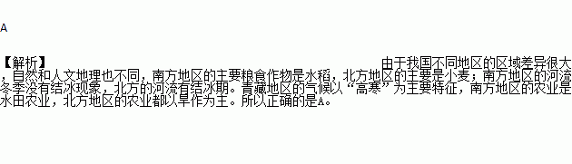 A. 南方地区的主要粮食作物是水稻,北方地区的主要是小麦