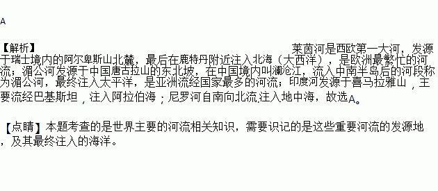 A. 莱茵河─大西洋 B. 湄公河─印度洋