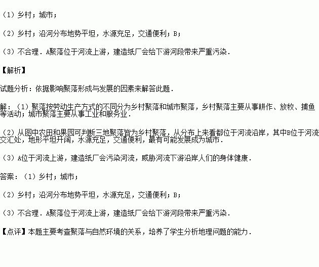 (3)A聚落附近森林资源丰富,在此地建一处造纸厂是否合理?为什么?
