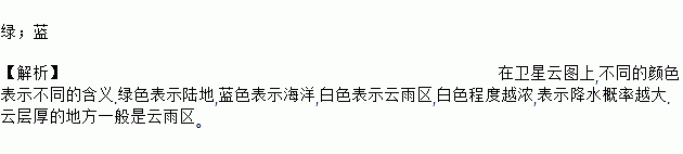 卫星云图中________ 色表示陆地,________ 色表示海洋,白色表示云区.