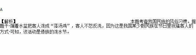 端着水盆把客人泼成“落汤鸡”,客人不怒反洗,因为这是我国某少数民族在节日里祝福客人的方式,该民族是( )