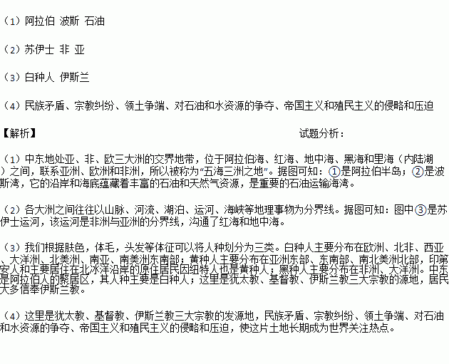 (4)请写出中东地区长期成为世界关注热点的原因。