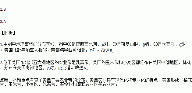 C. ③是大西洋 D. 美国北部与加拿大相邻