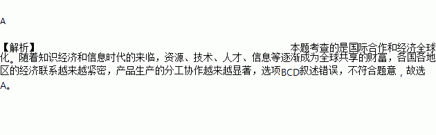 随着经济全球化的发展,资源、技术、人才、信息逐渐成为( )