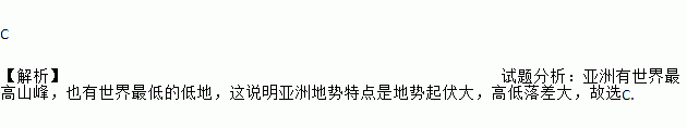 C 【解析】试题分析:亚洲有世界最高山峰,也有世界最低的低地,这说明亚洲地势特点是地势起伏大,高低落差大,故选C.