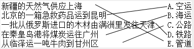 2.连线题.分析 现代化的交通运输方式主要有铁路、公路、水路、航空和管道运输.经过长期的不懈努力,中国初步形成了由这些交通运输方式组成的现代化交通运输网络体系.