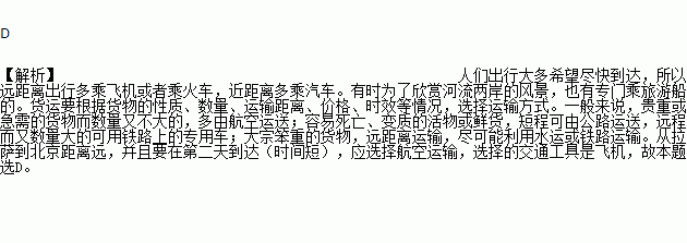 某人从拉萨到北京开会,第二天必须赶到,应选择的交通工具是:( )