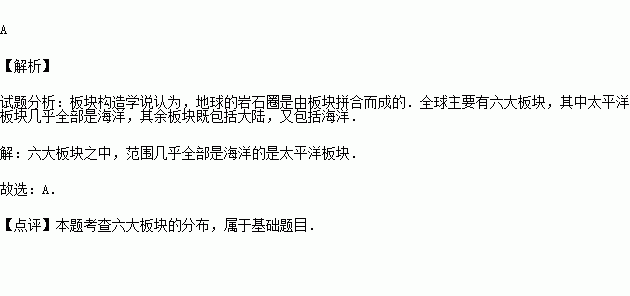 A.太平洋板块 B.印度洋板块 C.大西洋板块 D.北冰洋板块