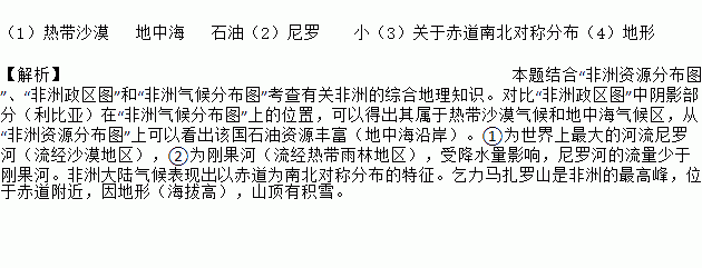 £¨1£©·ÇÖÞÕþÇøÍ¼ÖÐÒõÓ°²¿·Ö´ú±íµÄ¹ú¼ÒÊÇÀû±ÈÑÇ£¬¸Ã¹úÖ÷ÒªÊôÓÚ_________ÆøºòºÍ______Æøºò£¬_____ (¿ó²ú)×ÊÔ´·á¸»¡£