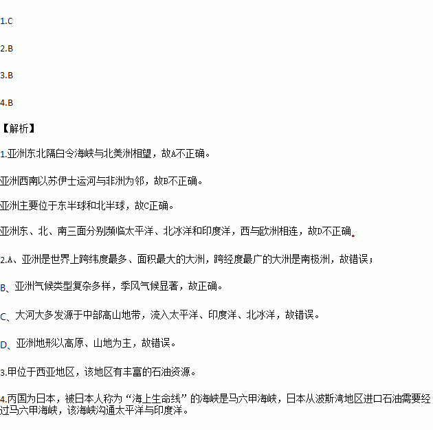 4.甲处的重要矿产资源输往丙国需要经过海上生命线( )