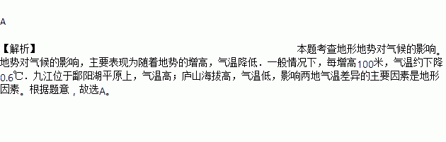 下图是5月12日江西九江和庐山风景区(距离九江19 km)的天气预报。阅读该日天气预报,影响图中两地气温差异的主要因素是( )