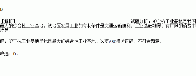关于沪宁杭工业基地叙述,不正确的是