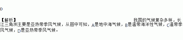下面四幅气温曲线和降水量柱状图中,符合长江三角洲地区的是( )