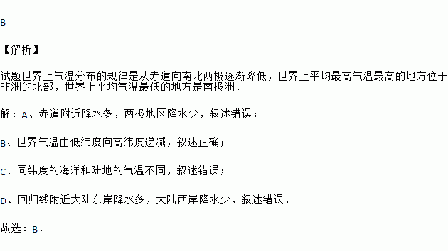 下列关于世界气温和降水分布规律的说法,正确的是( )