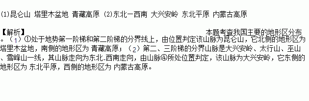 (1)图中山脉①②③是第一阶梯和第二阶梯的分界线,其中山脉①是________山,它北侧的地形区为_____________________________,南侧的地形区为________。