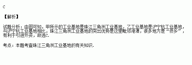 图示区域是我国重要的工业基地。与乙相比,甲所示区域发展工业的突出优势是 ( )