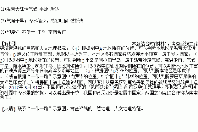 (3)ÃɰÍÈø±ôÁٵĴóÑóDÊÇ £¬´ÓÃɰÍÈøµ½Â¹Ìص¤×î±ã½ÝµÄº£ÉÏÔËÊäÊǾ Ô˺ӵĺ½Ïߣ¬ÃÉÄÚÌú·¿ªÍ¨Ê±£¬ÃɰÍÈøÊôÓÚ (Ìʪ¼¾¡±»ò¡°¸É¼¾¡±)£¬ÎÒ¹úºÍ¿ÏÄáÑǵĻ¥ÖúºÏ×÷³ÆÎª¡° ¡±¡£
