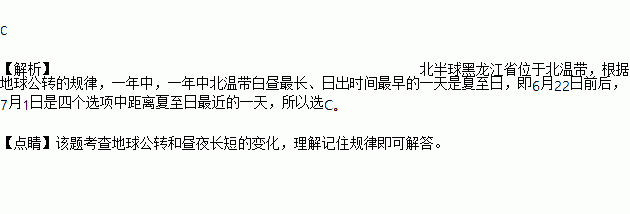 下列日期中,白昼时间最长,日出时间最早的是: