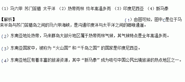 (1)图中C是______海峡,它位于马来半岛和______岛之间,是沟通印度洋和_______洋的咽喉要道。